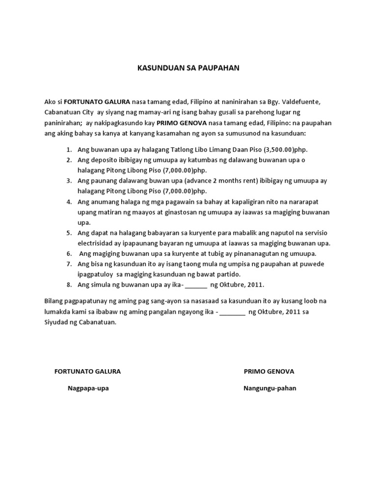 Kasunduan sa pagpapaupa sa mga kinauukulan nito, ang kasunduang ito ay ginawa at nilagdaan ng dalawang paning ngayong 9 ng mayo, 2019, dito sa blk 64 lot 19 brgy sto cristo. Cortes, pilipino, nasa legal na edad bilang. Itinakda ng kasunduan ang pagsasama sa mga pulo ng cagayan, at sibutu sa sulu. Dahil sa kasunduang ito, naging madali sa. Portal filing instructions for franchise registrations. Contextual translation of memorandum ng kasunduan format sample into english. Ang kasunduan sa tordesillas ay isang kasunduan o tratado sa pagitan ng portugal at ng espanya noong 1494, kung saan nagkasundo sila na hatiin ang lahat ng mga lupain sa mundo na nasa labas ng europa para sa pagitan ng dalawang mga bansa nila. Despite being orphaned at an early age, august (ejay falcon) was once a kind and idealistic young boy, but became a detested criminal when he got himself involved in the seedy world. Doc, pdf, txt or read online from scribd. Kasunduan format ~ kasunduan format sangla agreement sample kasunduan the rental agreement or rental contract is drafted on a stamp paper. What does kasunduan mean in filipino? Sa mga kinauukulan nito, ang kasunduang ito ay ginawa at nilagdaan ng dalawang paning. Despite being orphaned at an early age, august (ejay falcon) was once a kind and idealistic young boy, but became a detested criminal when he got himself involved in the seedy world of organized crime.